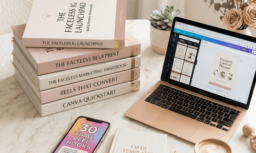 ✔︎ The Faceless Blueprint: Start here to connect with your "why" and build the mindset for success. (Value: $32)